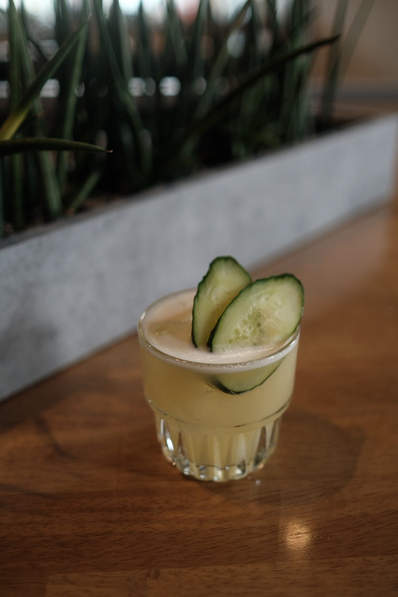 Джин, сироп бузини, сік яблучний, фреш лимонний, огірок.