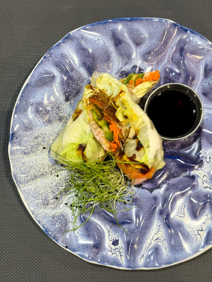 Борошно, молоко, яйце, куркума, цукор, апельсинова цедра, філе апельсина, масло, лікер апельсиновий, морозиво пломбір, м’ята.